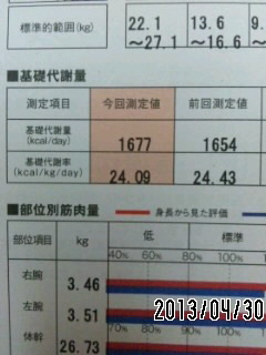 個人的には上手く増量できたと思う。因みに、標準的な筋量は51kgらしい。